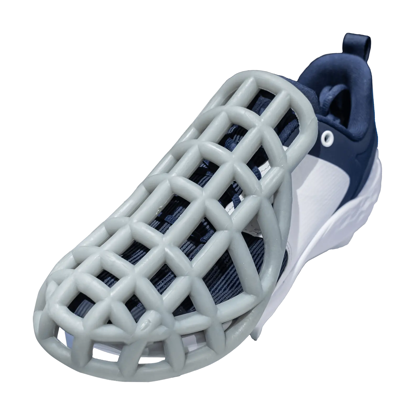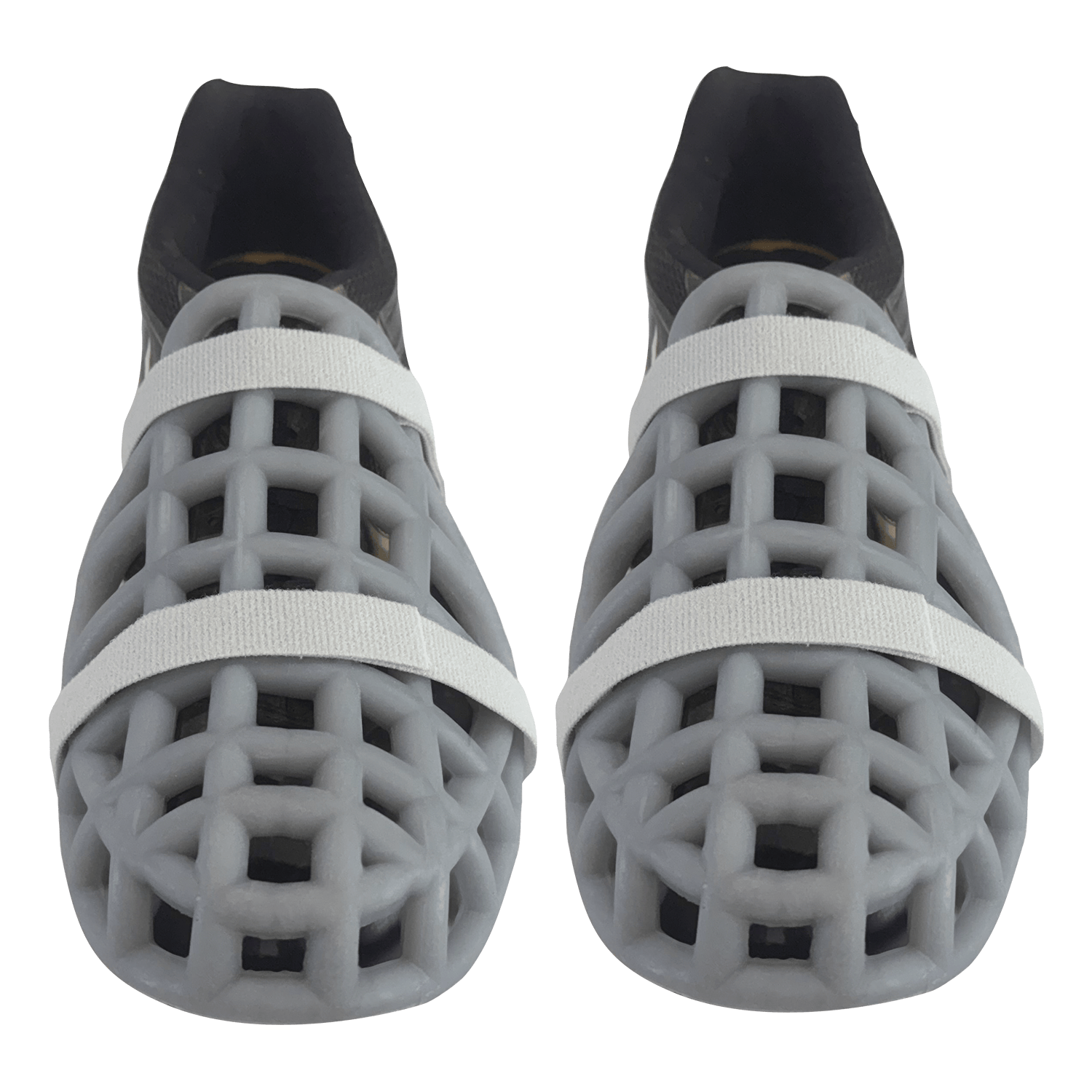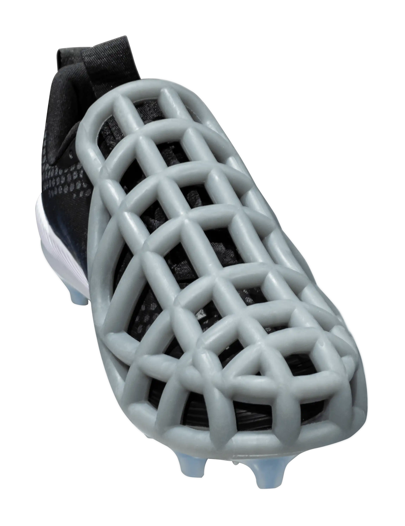 The Foot and Toe Guard is a high-density polymer foot and toe covering designed to be worn on top of regular turf shoes.
