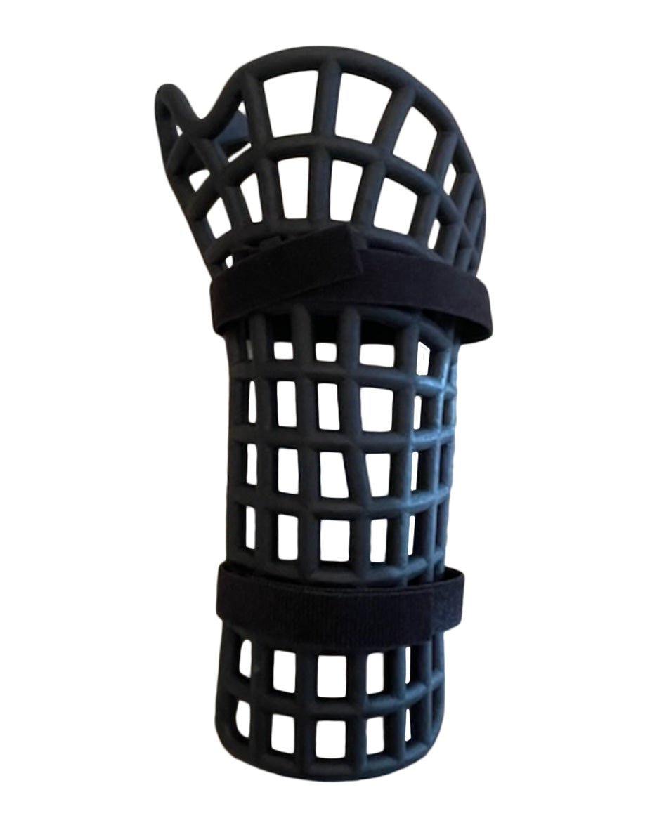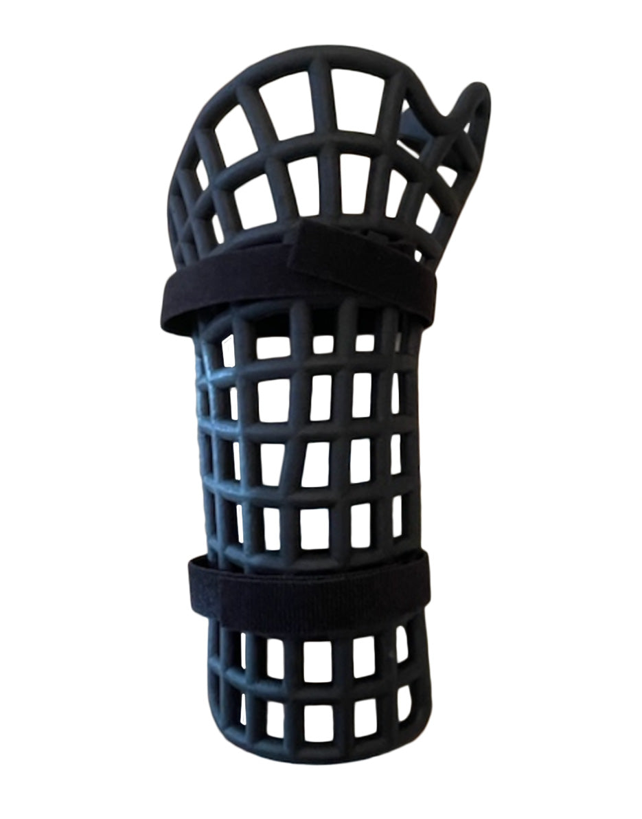 The Hand and Arm Protector works by absorbing and redistributing the kinetic energy of an impact that could otherwise lead to a potential hand and wrist injury.